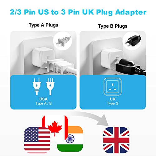 3-Pack US to UK Travel Adapter - HITRENDS Type G Grounded Plug Converter (3-Pin UK Socket), Universal Power Adapter for USA/UK Devices, White