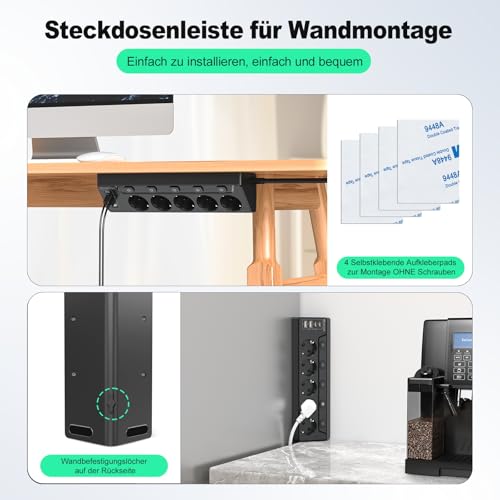 ✔Wandmontierte Steckdosenleiste & 2M Kabel: Die Steckdosenleiste ist für die Wandmontage vorgesehen. Auf der Rückseite der Steckdosenleiste befinden sich zwei Löcher, damit Sie sie an die Wand hängen können, was viel Platz auf dem Schreibtisch spart. Das 2 m lange Kabel kann auch schwer zugängliche Stellen erreichen, was den praktischen Nutzen erhöht. Mehrere Steckdosen halten Ihren Schreibtisch sauber und aufgeräumt, ideal für Büro und Zuhause.