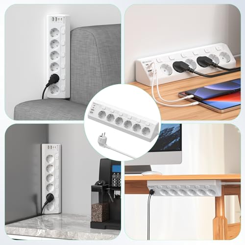 ✔Sicher und langlebig: Die Mehrfachsteckdose mit USB ist aus hochwertigem PC gefertigt, verfügt über Schutz gegen Überspannungen, Überströme, statische Elektrizität und Kurzschlüsse, ist stabil, robust, sicher und hält hohen Temperaturen stand.