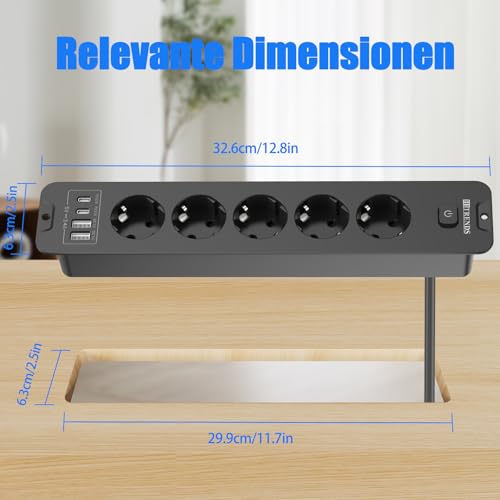 ✔Einfach zu installieren: Schneiden Sie ein Rechteck in der Tabelle, legen Sie die Steckdosenleiste in dann schrauben Sie es fest. Außenmaße 326 x 63mm (L x B), Einbautiefe mit Kabelanschluss: 43 mm - Ausschnittmaße: 300 x 63 x 43 mm (L x B).