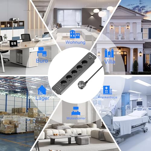 ✔Sicher & Langlebig: Mehrfachsteckdose mit USB besteht aus hochwertigem PC-Material, verfügt über Überspannungs, Überstrom, Antistatik und Kurzschlussschutz, ist stabil, robust, sicher und widerstandsfähig gegen hohe Temperaturen.